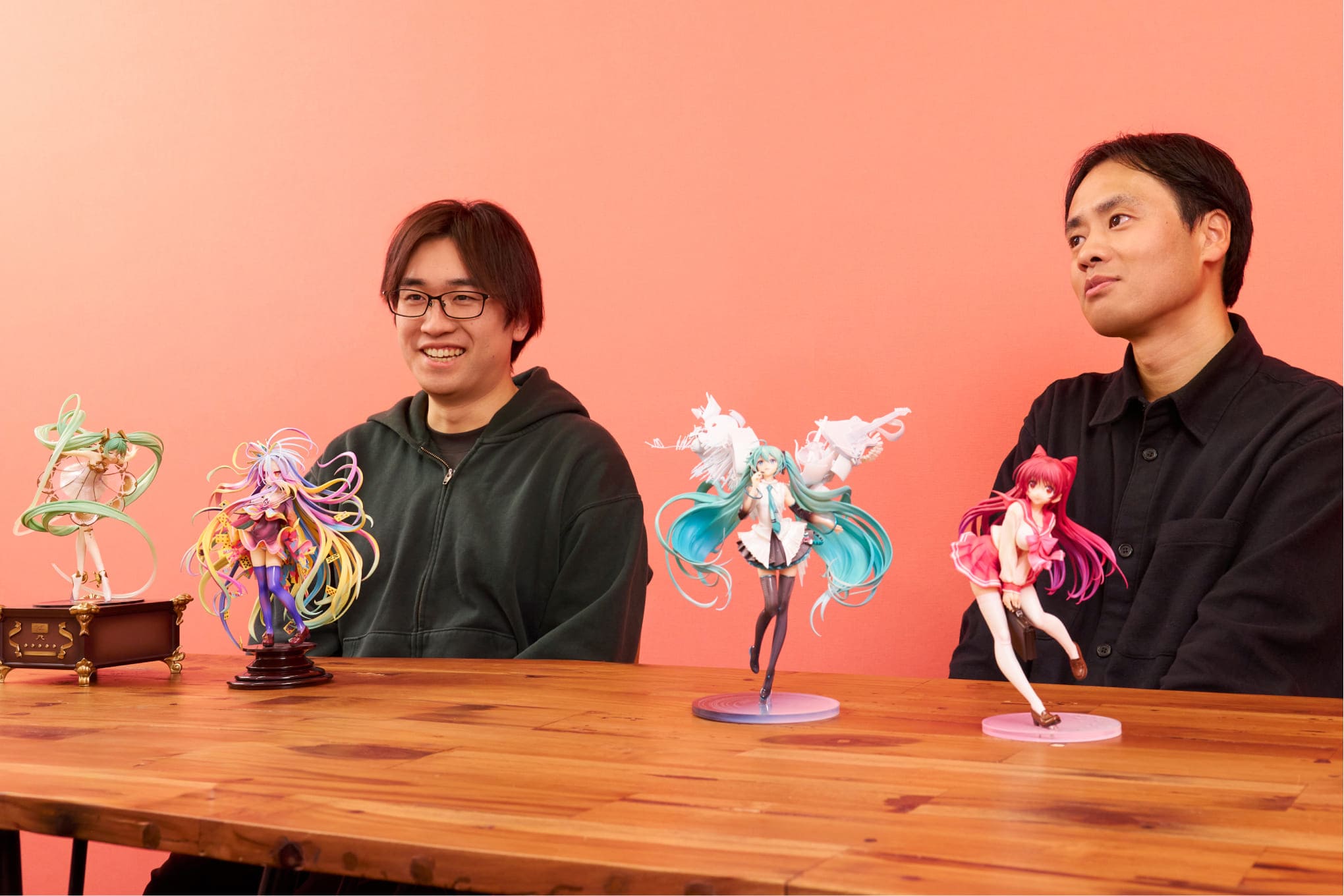 求められるのは、IPやキャラクターへの飽くなき愛情をはじめ、製造まで見据えた判断力と技術力。ただ、グッドスマイルカンパニー制作部彩色チームの仕事は、フィニッシャー一人の感覚で完結しません。原型師・企画部・製造部・ディレクターと対話を重ね、集合知で商品をブラッシュアップしていきます。その過程で磨かれる品質と、責任の先にあるやりがいを、主幹の杉健司さんと吉野展弘さんにお聞きしました。